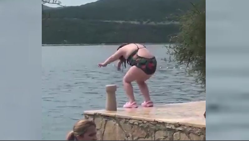 Una donna tenta il tuffo della vita: la scena è esilarante