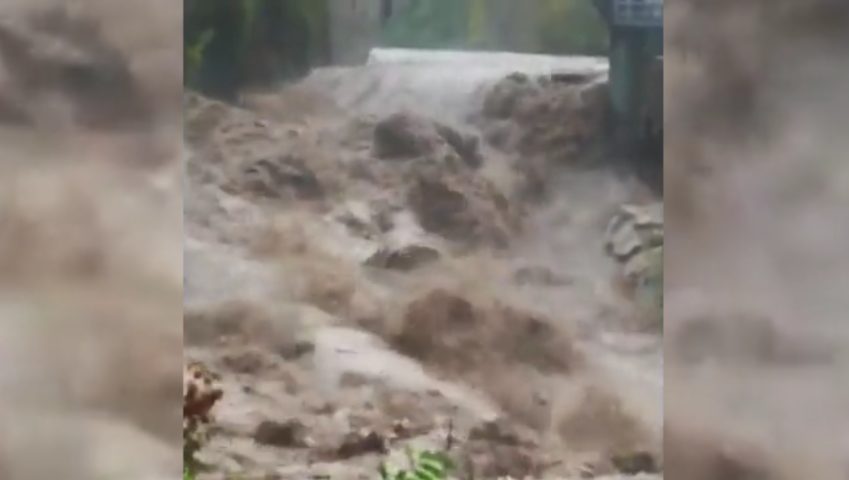 L'esondazione del torrente Degano a Ovaro, in provincia di Udine: il maltempo ha provocato tanti disagi in Friuli