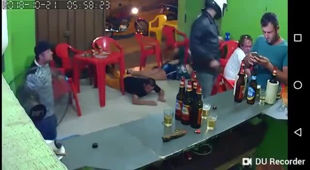 Un bar affollato di gente in Brasile è teatro di una scena drammatica ma che ha del surreale. Tutti i presenti impauriti si bloccano e si stendono a terra quando un uomo armato e con un casco a coprire il volto entra e chiede l'incasso. Solo un ragazzo vicino al bancone resta in piedi, distratto dal suo cellulare non si accorge praticamente di niente e quando tutto finisce distoglie lo sguardo e si accorge delle persone ancora stese sul pavimento.