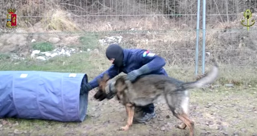 Un video del NOCS, il corpo speciale della polziai di stato, che mostra l'addestramento di uno dei pastori tedeschi del nucleo. Fonte: https://www.youtube.com/watch?v=U0jAKkVwuFQ