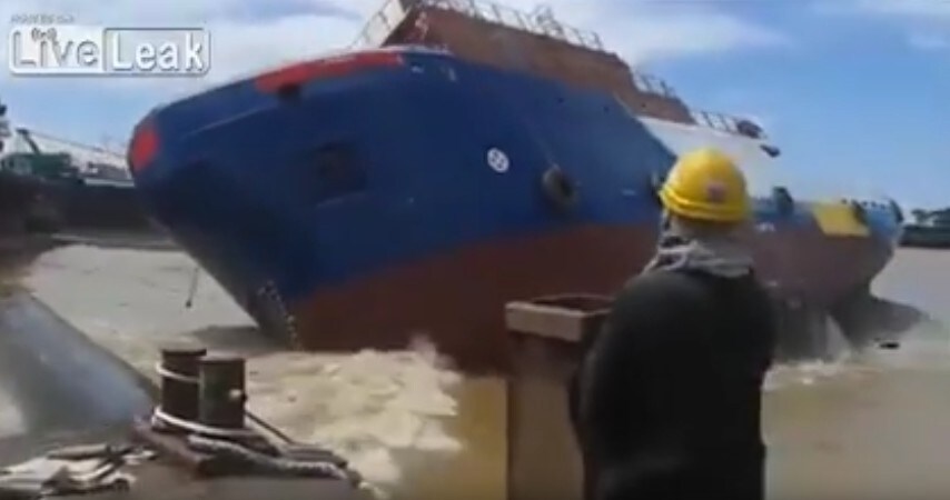 Nave messa per la prima volta in acqua si capovolge: il varo fallisce