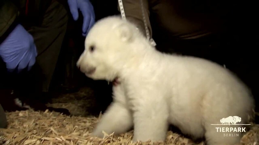 Le Immagini della prima visita veterinaria del piccolo orso polare nato allo zoo di Berlino.http://www.tierpark-berlin.de/en
