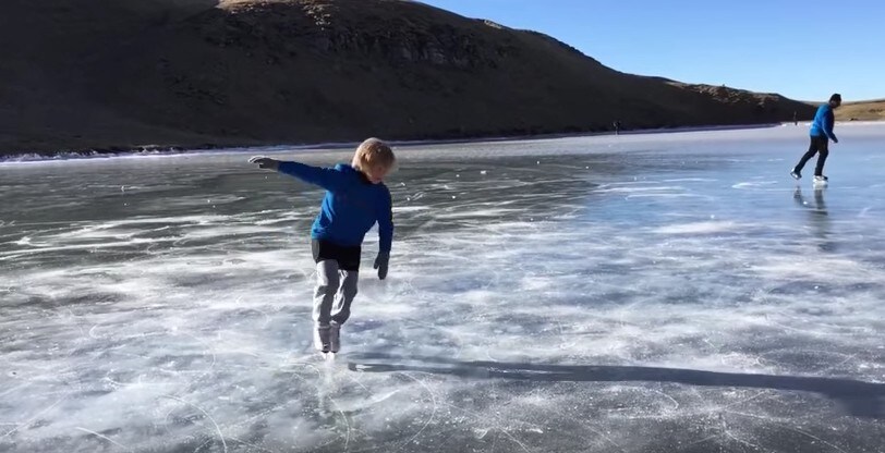 Ragazzo pattina sul lago Scaffaiolo ghiacciato: le immagini diventano virali