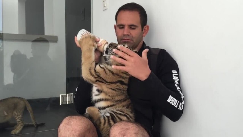 Cuccioli di tigre e leoncini allattati con biberon presso la fondazione 'The Black Jaguar Tiger'Fonte video: https://www.youtube.com/watch?v=QEznk2NfWqk