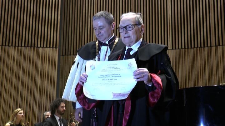 Per Morricone è la terza laurea honoris causa dopo quella del marzo 2000 quando fu l'Università di Cagliari ad assegnarli il primo alloro e la seconda, invece, dall'ateneo Roma Tor Vergata. Morricone ha scritto le melodie per più di 500 film e serie tv, aggiudicandosi due Premi Oscar: uno alla carriera, nel 2007, e l'altro nel 2016 per la migliore colonna sonora del film di Quentin Tarantino "The Hateful Eight".
