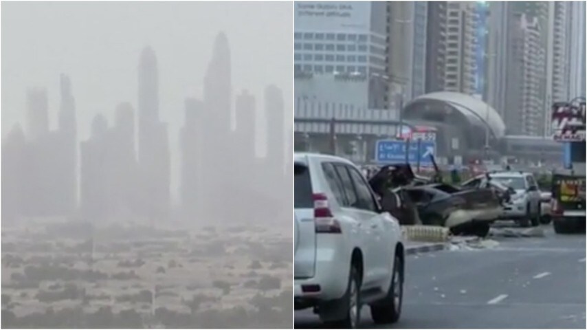 Neve e maltempo record negli Emirati: a Dubai crolla una gru per le raffiche di vento