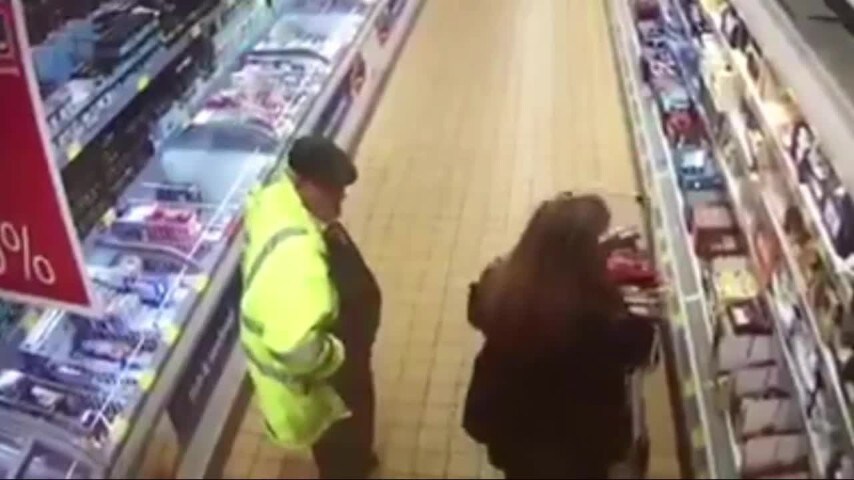 Le telecamere di sicurezza del supermercato riprendono la scena. L'uomo anziano, con un giubbotto catarifrangente, si aggira nel reparto seguendo una signora intenta a fare la spesa. Guardandosi intorno furtivamente ecco che, improvvisamente, muove la gamba e accadde l'impensabile: dal pantalone cadono dei pezzi neri che si scoprono essere le sue feci; lascia gli escrementi per terra, facendo finta di niente, e va via. La scena è davvero disgustosa.Fonte: https://www.liveleak.com/view?i=762_1488454728