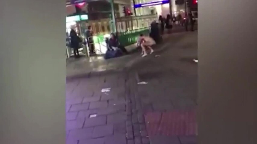 Un uomo gira nudo a quattro zampe verso un senza tetto terrorizzato su una strada trafficata di Londra. L'uomo, seduto fuori la stazione di Tottenham Court Road, spaventato tenta di fuggire, urlando "portatelo via da me".