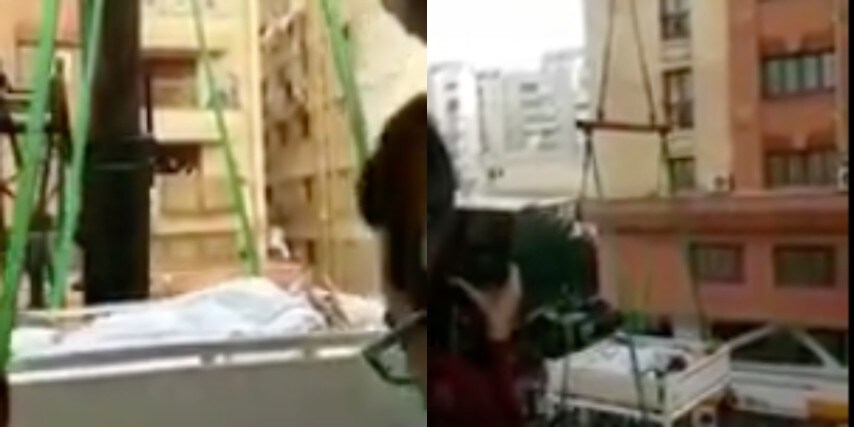La donna del video, di origine egiziana, si chiama Eman Ahmed ed è la donna più pesante al mondo per un problema chiamato elefantiasi, che causa enorme gonfiore al corpo e che si contrae tramite infezione parassitaria. Bloccata nei movimenti per la sua enorme stazza dall'età di 11 anni, viene calata con tutto il letto dal balcone tramite una gru per essere portata in ospedale, al Saifee Hospital, Mumbai, dove a seguito di un'operazione ha perso metà del suo peso corporeo. Fonte: https://www.youtube.com/watch?v=hSCd8jGi5Do