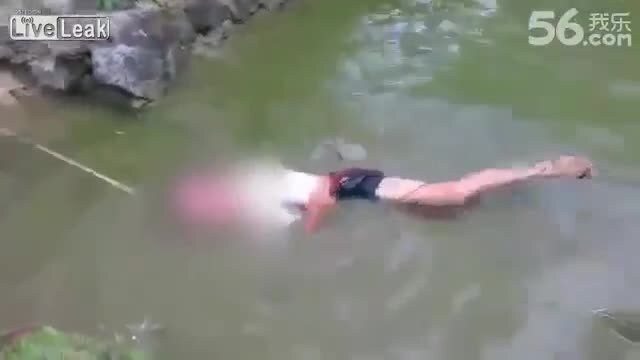 Il momento ripreso è davvero impressionante; il pescatore, immerso nell'acqua, cerca di catturare l'anguilla elettrica, detta più propriamente elettroforo (pesce d'acqua dolce appartenente alla famiglia Gymnotidae). La blocca in un angolo ma non riesce a portare a termine la sua missione perchè prende una scossa di 400-500 watts e cade nell'acqua. Il momento è scioccante.Fonte: https://www.youtube.com/watch?v=DgdYXhS5_5s