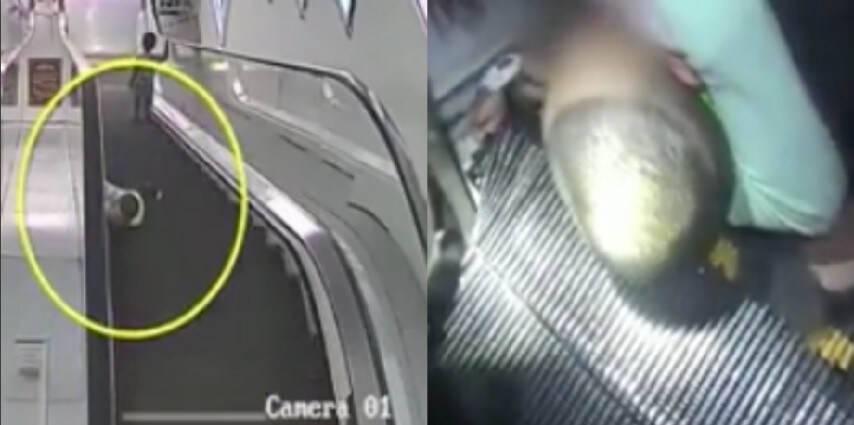 Le telecamere di sicurezza del supermercato cinese, sito a Tongren City’s Jiangkou County, a sud-ovest della provincia di Guizhou, hanno ripreso la terribile scena che poteva trasformarsi in tragedia. Un bambino, cadendo, è rimasto incastrato nella guarnizione laterale della scala mobile che lo ha trascinato giù sotto gli occhi increduli di alcuni passanti. Rendendosi conto della grave situazione una signora si è precipitata giù a bloccare la scala e ad aiutare il piccolo; è servito l'intervento dei vigili del fuoco per liberarlo e portarlo in salvo. Forte spavento per tutti. Fonte: https://www.liveleak.com/view?i=30a_1493814899