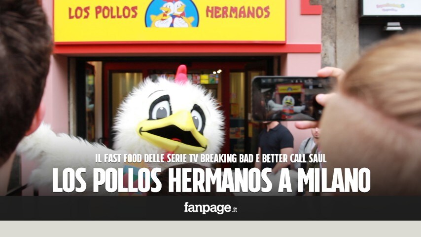 Milano, piazza XXIV Maggio. Tutti in fila per l’apertura straordinaria di Los Pollos Hermanos, la catena di fast food immaginaria delle serie TV Breaking Bad e Better call Saul, che venerdì 12 e sabato 13 ha gratuitamente distribuito pollo fritto a tutti gli amanti delle serie prodotte da Netflix. Anche nel capoluogo lombardo, nonostante la pioggia, sono decine le persone che si sono messe in fila per una porzione di pollo fritto e patatine sotto l'attento sguardo del gestore Gus Fring, l'immaginario narcotrafficante di Breaking Bad che usa la catena Los Pollos Hermanos come copertura per i suoi traffici.