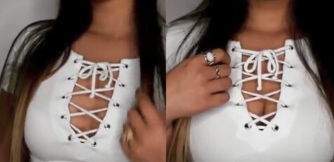Effetto push up sotto la maglietta: basta stringere i laccetti del reggiseno per un decollete "esplosivo".Fonte video - Maya Makeup By Monycatamang - https://www.instagram.com/p/BUAkJDWgsWr/
