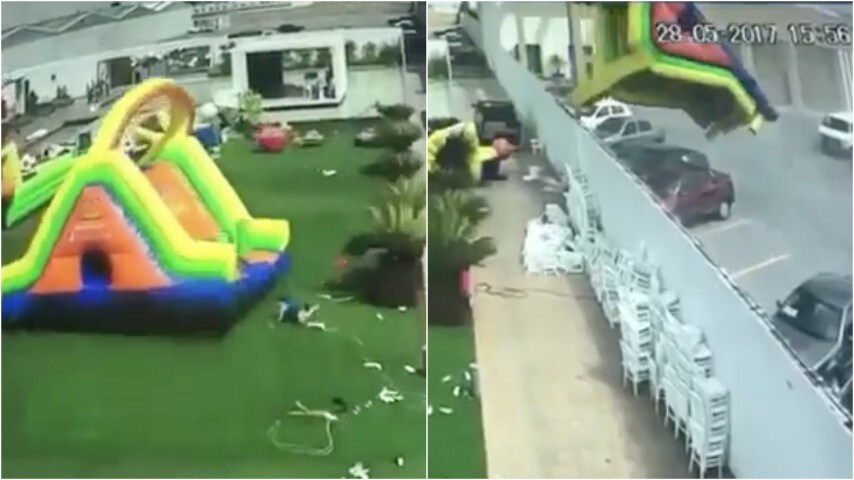 Tragedia al parco giochi, il gonfiabile viene spazzato via dal vento: una bambina in fin di vita