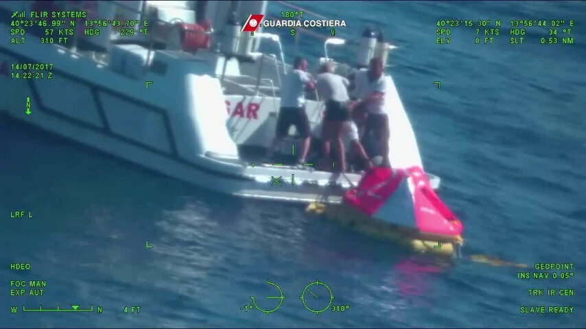 Le immagini dei soccorsi ai naufraghi in mare, presso secca delle Vedove, tra Ischia e Capri. La Guardia Costiera ha recuperato due persone alla deriva a circa 21 miglia a Sud di Sorrento, dispersa una terza persona.
