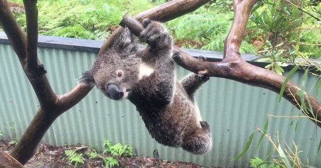 La tenera avventura del cucciolo di koala: si arrampica sui rami come un ninja