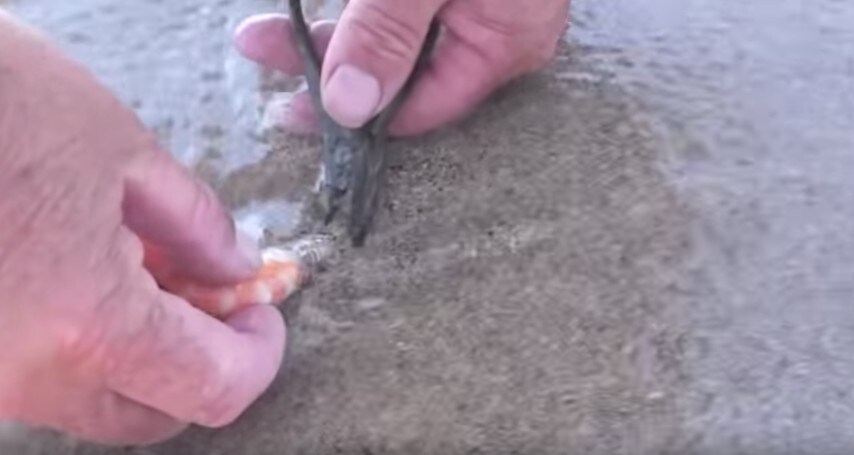Alcune persone a caccia di arenicole sul bagnasciuga. I cosiddetti vermi di mare vengono attirati strofinando dei gamberi sulla battigia e succesivamente afferrati e tirati fuori. Fonte: https://www.youtube.com/watch?v=-RV6gIytc5Y