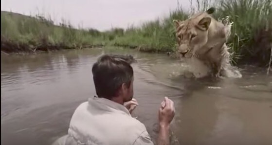 Kevin Richardson è un famoso e stimato zoologo conosciuto anche con il nome "l'uomo che sussurrava ai leoni". In questo video girato in Sudafrica, l'uomo aspetta l'arrivo di una leonessa dopo essersi tuffato in un fiumiciattolo. La scena è davvero tenera. Fonte: https://www.youtube.com/watch?v=n1RvSEXqOW4