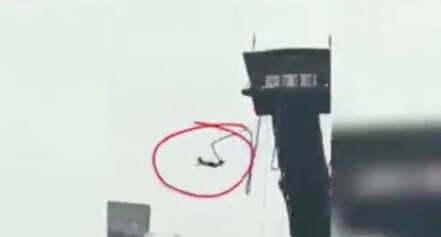 In queste immagini da brivido il momento in cui una persona ha rischiato di morire quando la corda del bungee jumping, a sud-ovest di Pechino, si è spezzata. La vittima è precipitata in acqua, ma per fortuna è sopravvissuta ed è stata ricoverata d'urgenza in ospedale.