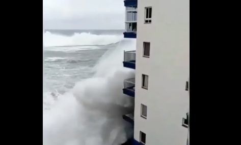 Un video mostra i danni che il maltempo ha provocato a Tenerife. Una gigantesca onda arriva dall'oceano e sbatte contro la facciata di un albergo, spazzando via alcuni balconi.