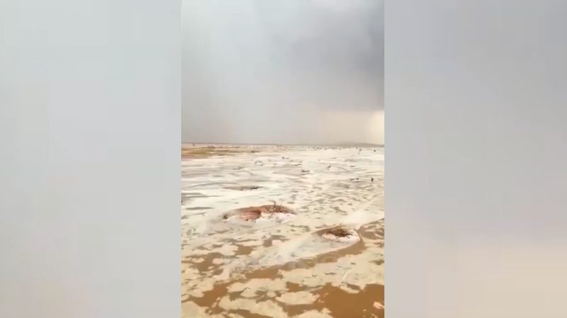 Gli effetti del maltempo in Arabia Saudita: dopo le piogge torrenziali nel deserto si è creato uno scenario più unico che raro.