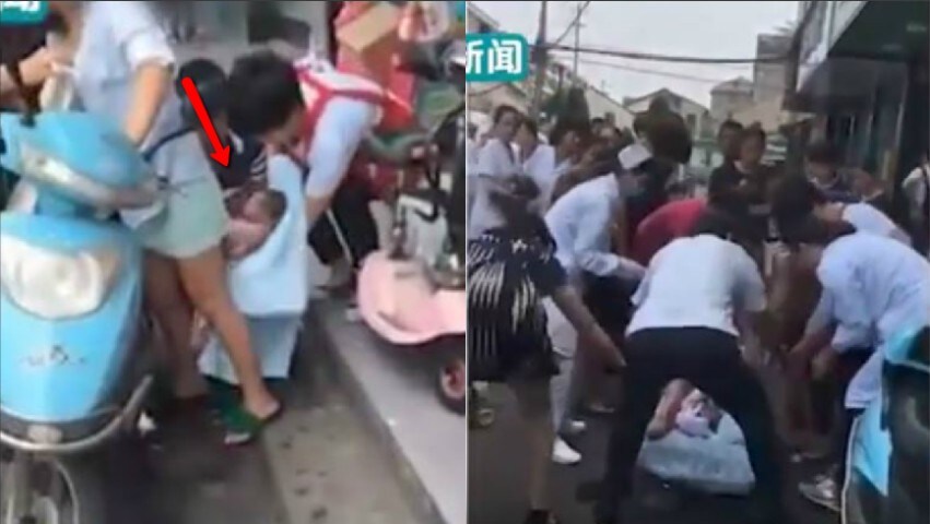 Cina, una donna incinta esce di casa con lo scooter non aspettandosi che darà alla luce suo figlio. Le acque si rompono e, in piedi, partorisce grazie all'aiuto dei passanti. Mamma e neonato vengono poi portati in ospedale.