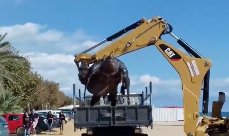 Spagna, una tartaruga gigante di 700 kg portata via con una gru: l'impressionante ritrovamento