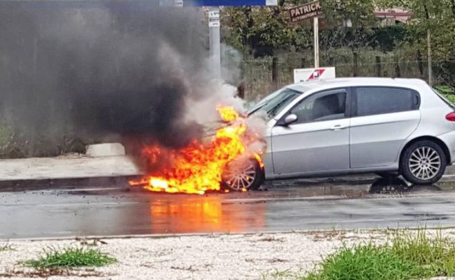 Gricignano (Caserta), auto in fiamme vicino allo svincolo della superstrada