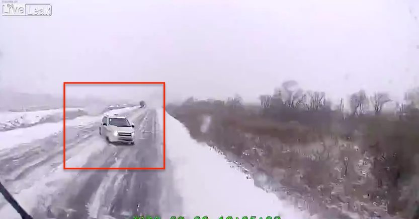 Un'auto perde il controllo sulla strada ricoperta di neve e ghiaccio e si scontra contro un altro veicolo su cui è in stallata la dashcam; dopo un po' il terribile schianto con un grosso tir. L'incidente è avvenuto in Russia.