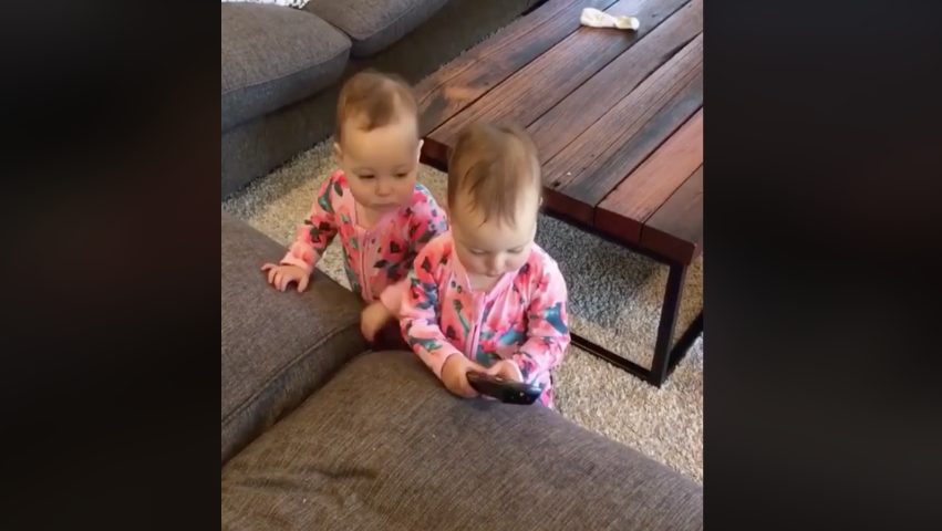 La mamma riprende quello che fanno le due gemelline: la tenera scena