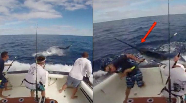 Paura in barca, un Marlin salta a bordo e rischia di trafiggere il pescatore