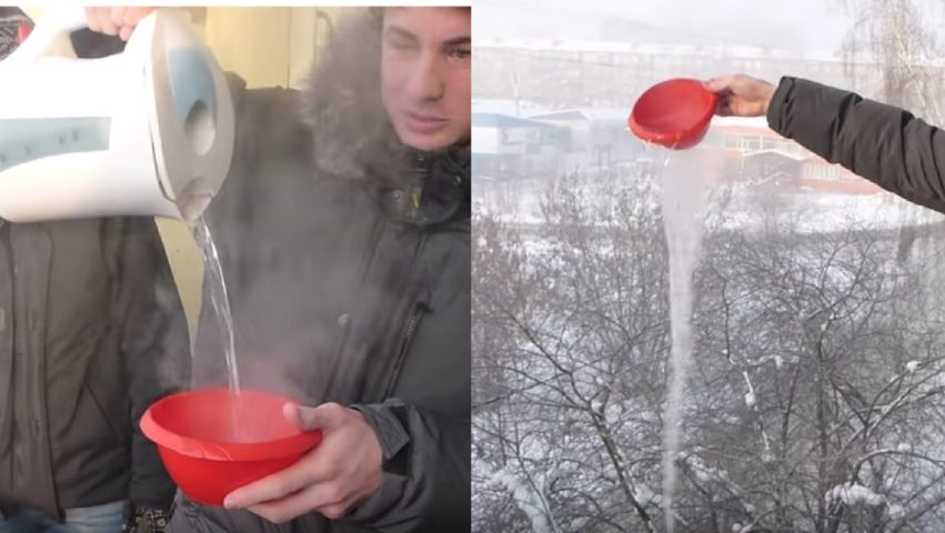 La temperatura segna -40°: getta acqua calda dal balcone e guardate cosa accade
