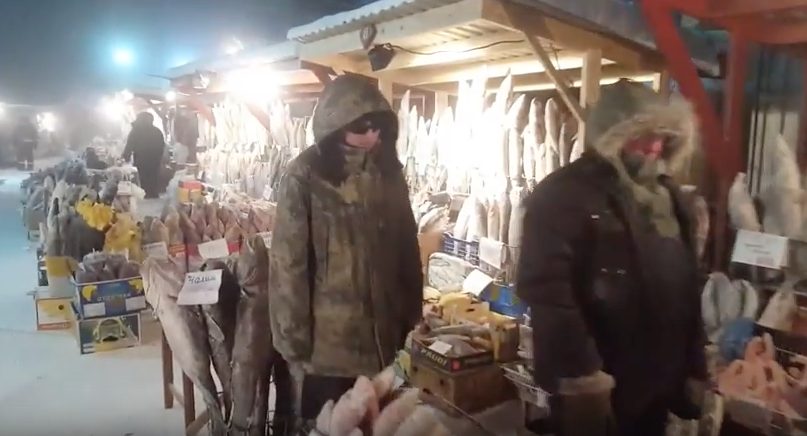 Viaggio nel caratteristico mercato del pesce di Jakutsk, situata nel Nord-Est dell Siberia e conosciuto come il posto più freddo al mondo: nel momento in cui vengono filmate le immagini ci sono ben 49° sotto lo zero. Fonte video: https://www.youtube.com/watch?v=LJXYPiG5hLk