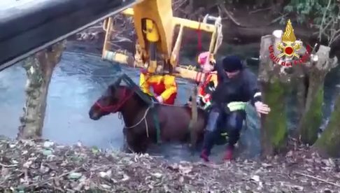 Dopo essere entrato nel fiume Tesina a Lupia di Sandrigo, nel Vicentino, il cavallo era rimasto incastrato con le zampe nel fondo fangoso, incapace di uscirne. I vigili del fuoco sono entrati in azione, e dopo aver imbragato l’animale con delle fasce, lo hanno issato con l’aiuto di un gancio.
