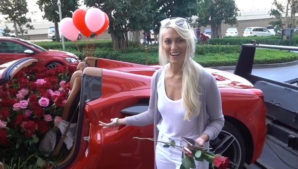 Una Ferrari 488 Spider con a bordo 1000 rose. Si tratta di un regalo per San Valentino ricevuto da Alex Hirschi, conosciuta come “Supercar Blondie”, per via della sue passione per le supercar. A Dubai il marito le ha fatto trovare fuori all'hotel l'incredibile sorpresa.