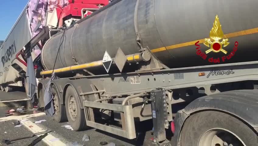 Scontro tra tir e autocisterna sulla A4: un ferito, acido solforico finisce sull'asfalto