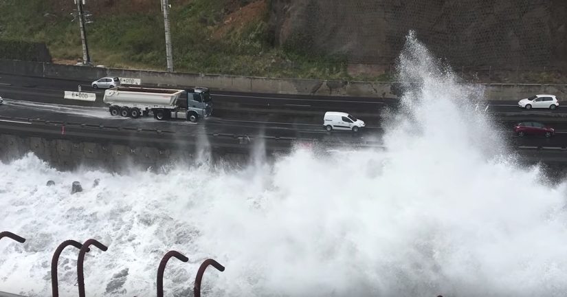 Onde gigantesche invadono l'autostrada: gli effetti spaventosi del ciclone