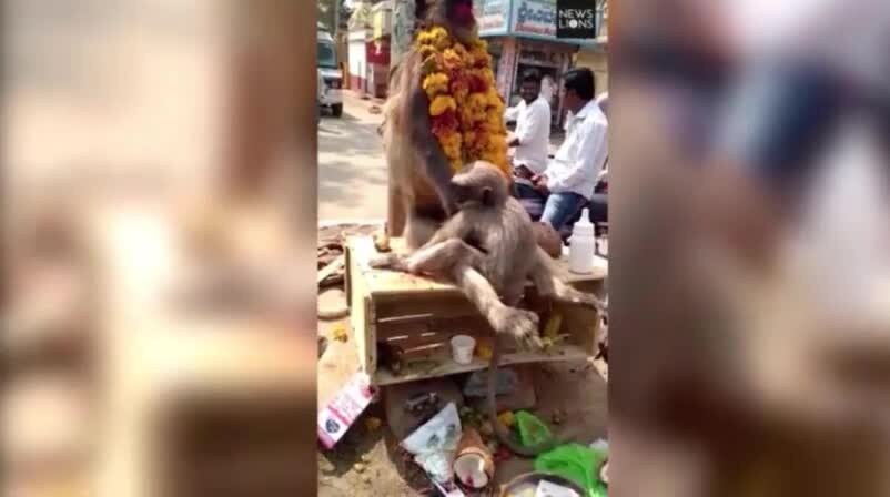 Una piccola scimmia è aggrappata alla mamma rimasta folgorata mentre saltellava sui pali della luce. La scena straziante è stata ripresa Lakshameswar, nel Karnataka, nel sud dell'India. All'animale defunto, i passanti avevano apposto una ghirlanda di fiori al collo in segno di lutto
