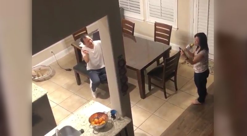 La figlia riprende cosa fanno mamma e papà in cucina: la scena è emozionante