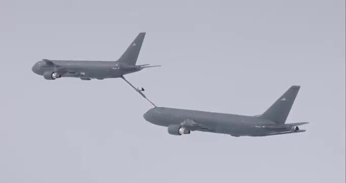 Le operazioni di rifornimento di un KC-46 Pegasus da parte di un Boeing: entrambi gli aerei sono decollati a Boeing Field, a sud di Seattle. Si tratta di un test per rifornire gli aerei militari statunitensi che consente di rifornire fino a 4500 litri di carburante al minuto per gli aerei più grandi e fino a 1500 l per quelli più piccoli.