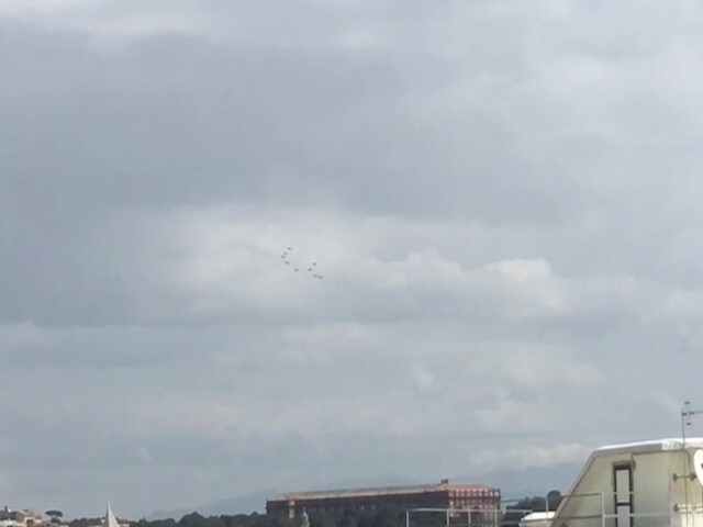 Napoli, cittadini con il volto al cielo: aerei militari sorvolano la città