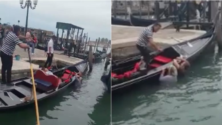 Piccola disavventura per una coppia di turisti a Venezia; i due si trovavano in gondola in Bacino di San Marco quando a causa di un movimento inaspettato dell'imbarcazione, sono finiti in acqua, facendo un bagno fuori programma. La scena e il successivo salvataggio sono stati catturati nel video di Roberto Ramon.