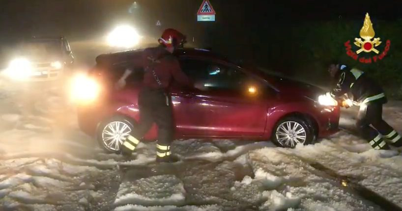 I vigili del fuoco sono intervenuti in provincia di Varese a causa dei numerosi disagi provocati dal maltempo: allagamenti in strada e frane. Una violenta grandinata a Cremenaga ha messo in difficoltà la circolazione dei veicoli, rimasti impantanati nel ghiaccio come mostrano le immagini.