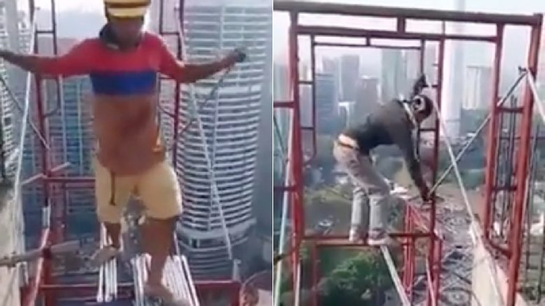 Un video che in poche ore è diventato virale. In Malesia, a Kuala Lumpur, alcuni operai si sono filmati mentre lavoravano in cima a un grattacielo, muovendosi sulle impalcature a una quarantina di metri da terra senza alcun tipo di protezione; nessuna rete e o gancio di sicurezza in caso di caduta. La scena a dir poco discutibile ha scatenato numerose polemiche in rete.
