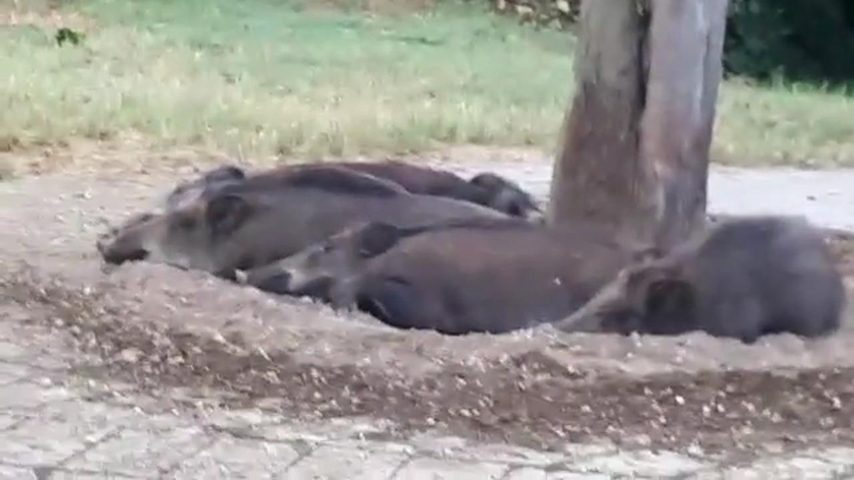 “Qui al parco abbiamo i cinghiali che dormono. Allucinante”; la scena filmata da un residente esasperato mostra un'intera famiglia di cinghiali riposare in un’area verde di via Cassia, una delle più grandi arterie di Roma.