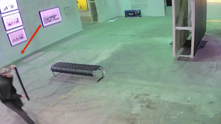 Un uomo col volto coperto entra alla mostra di Banksy: le telecamere riprendono tutto