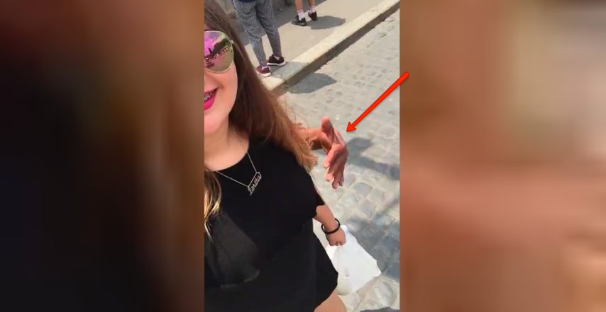 Una turista si riprende con il suo cellulare quando compare un estraneo che poggia le mani sul suo decollete prima di baciarla: nelle immagini si sentono le urla della donna presa di sorpresa che si spaventa tantissima