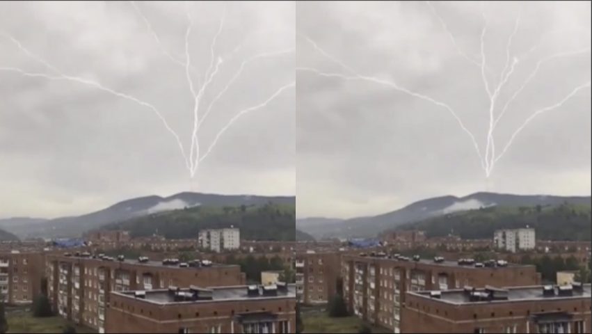 Russia, una donna è riuscita a catturare una scarica di fulmini ascendenti durante un temporale che ha colpito la città di Tashtagol. I fulmini ascendenti sono quelli diretti dal suolo alla nube.