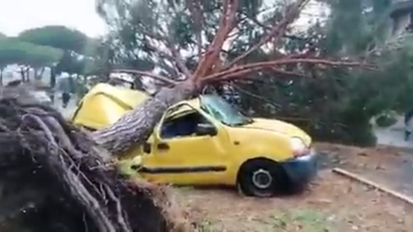 Una violenta tromba d’aria si è abbattuta su Cerveteri, litorale nord di Roma. Il sindaco ha invitato la popolazione a non uscire di casa. Le immagini mostrano la devastazione e in particolare un albero caduto su un'auto.