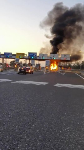 Fiamme al casello di Torrimpietra dell'autostrada A12, nel territorio di Fiumicino: a fuoco una vettura.